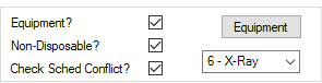 NOTE: For the scheduling conflict to work, preference cards must be attached to the scheduled procedure, and the equipment must be listed on the preference card with a quantity.