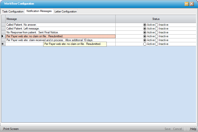 Primary Claim not printed/sent If a Primary claim has been generated, but has not been printed, downloaded, or transmitted within the days designated, a task will generate. Once a Primary claim has been printed, downloaded, or transmitted, the task will auto close.