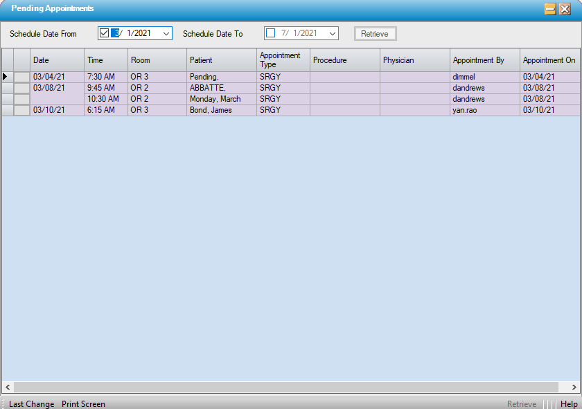 - Retrieve/Schedule Pending Appointments