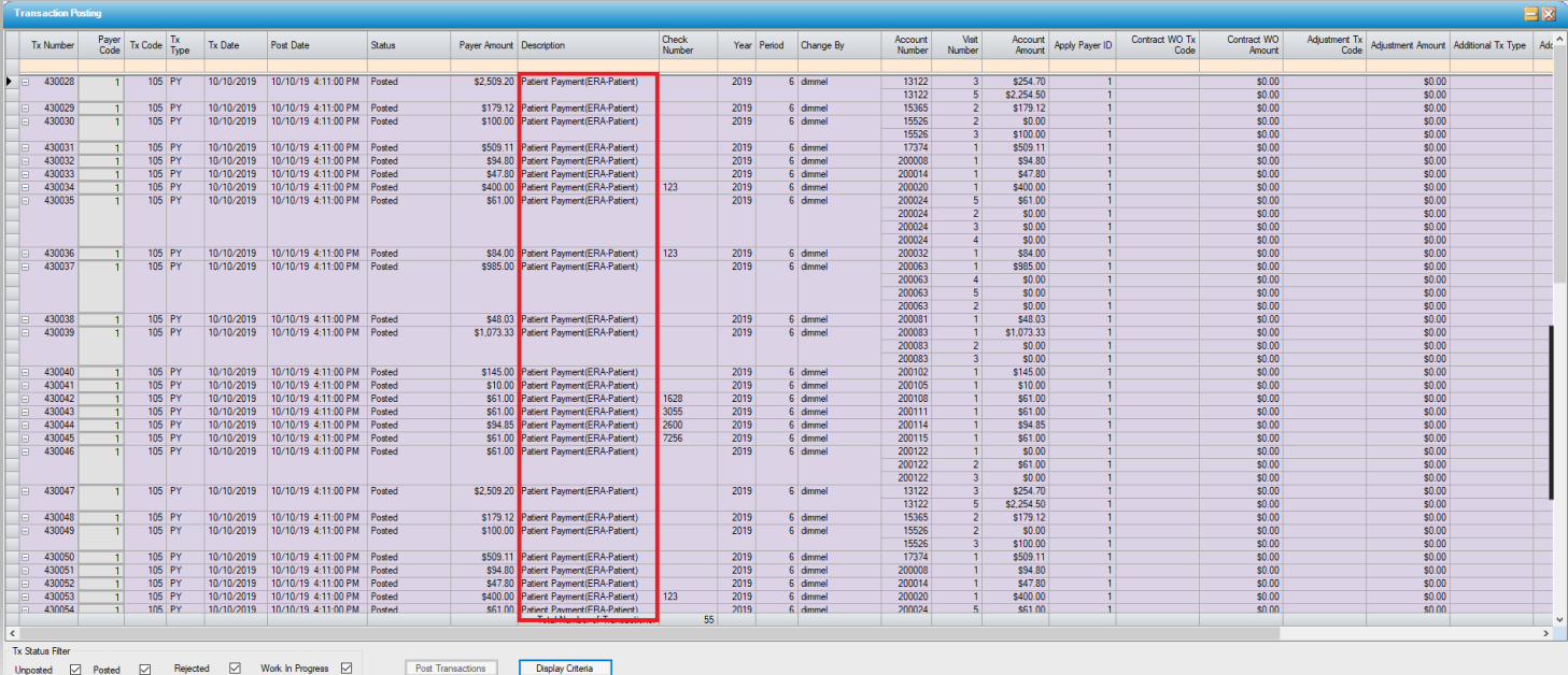 . (Because the ERA file is based upon the Z-Pay Posting Report, only one file will be available each day.) The accounts on the imported file will populate the Payment Detail Information grid.