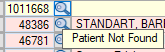to search for the account by Last Name, First Name, Patient ID, Patient Account, Additional ID 1, or Resp Party Last Name. If the account is found, select from the Patient Look Up grid and check the box to generate a transaction. If not, leave the box unchecked to research further. The color for this transaction will remain green in the tree view to indicate that transactions were not created for all payments.