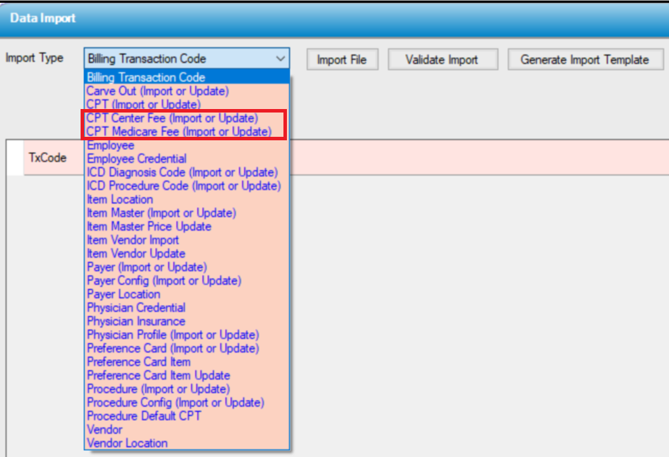 NOTE: Both the Center Fee and the Medicare Fee can be entered and/or updated utilizing the Utility > Data Import function.
