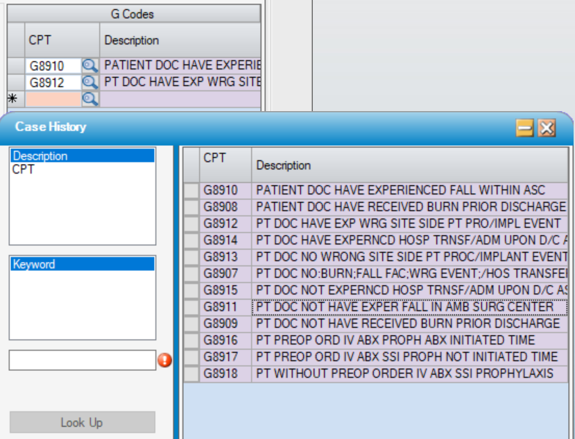 - G Code? - Selecting the check box for G Code? will make these codes available for selection on the Operative Records tab in Case > Case History