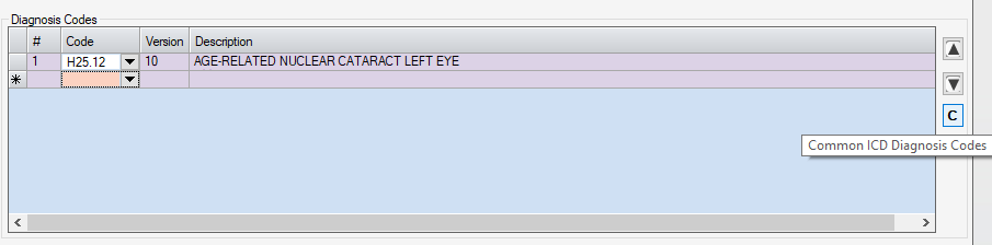 The diagnosis codes can be entered at any point in the charge entry process, but in order to use the Commonly Used diagnosis code functionality, CPT Codes must be entered first.