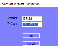 NOTE: If the amount that is set to Bill Patient Only is written off (for example, non-billable implants on a Medicare claim), enter the Contract Amount as $0.00 so that this amount is included in the calculations when the Contract WO transaction is created (whether in Charge Entry or Payments And Adjustments). This may create a contract variance in the Payments And Adjustments form when the insurance payment is entered. This variance is expected due to the fact that the billing transaction is self-pay but the write off is contractual.