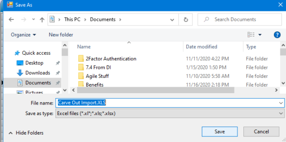 This feature allows users to generate a template in excel with the necessary columns to import. This function can also be performed using the Utility > Data Import > Carve Out (Import or Update).