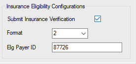 Payer Configuration > Misc Configuration tab must also be enabled for verification for each payer. Check the check box for Submit Insurance Verification. Complete the Elg Payer ID box if the payer has a separate ID for verification. Otherwise, the system will attach the ECS Payer ID entered on the Claims Configuration tab.