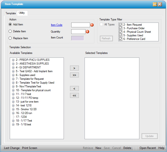 The Item Template Utility is a global utility that allows bulk changes to be made to Item Templates, much the same as the Preference Card Utilities. For example, an item that is no longer available can be deleted from all Item Templates on which it is found at once, or replaced with a new item.