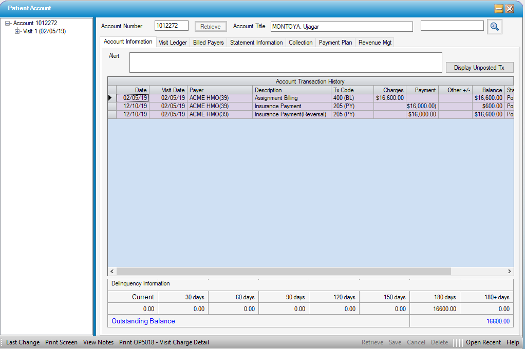 NOTE: There is a setting in Statement Options that will prevent transactions that have been reversed from appearing on patient statements, so long as the reversal was performed within the same statement cycle as the original transaction.