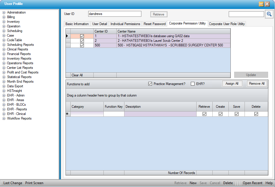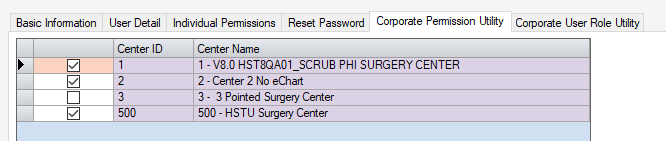 • Corporate Permission Utility allows Individual Permissions to be assigned to one user in multiple centers without having to access each individual center.