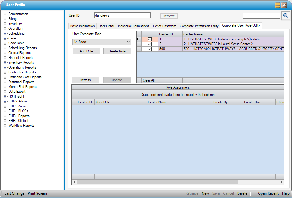 • Corporate User Role Utility allows User Roles to be assigned to one user in multiple centers without having to access each individual center.